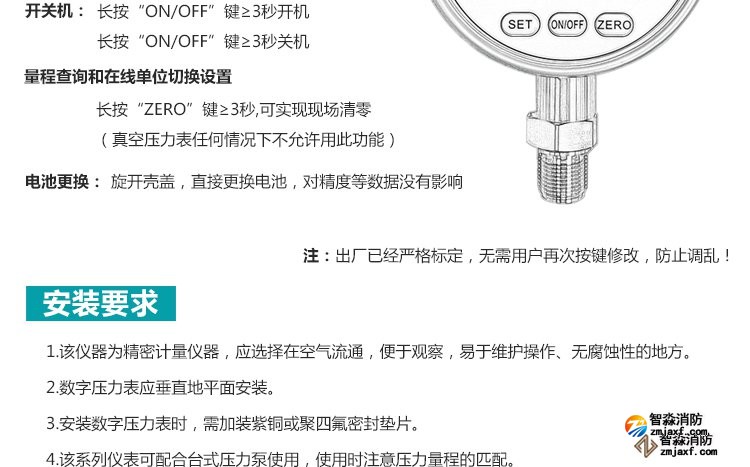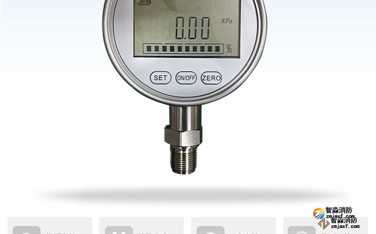 數字壓力表量程0-20MPa,精度0.4級測試消火栓用30. 細水霧末端試水裝置壓力表量程:0MPa~0.6MPa;精度:0.4級安裝在系統管網或分區管網的末端,檢驗系統啟動。